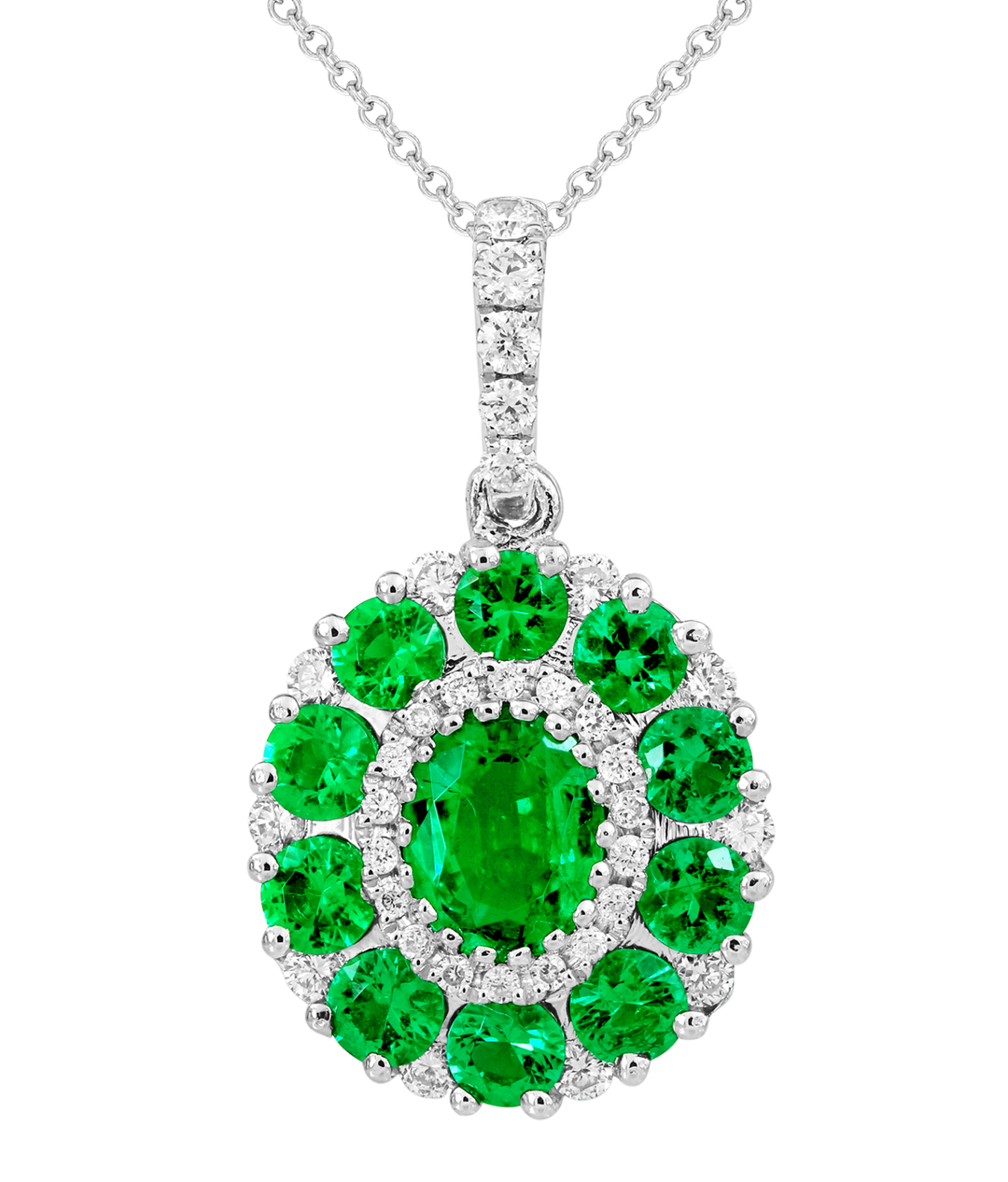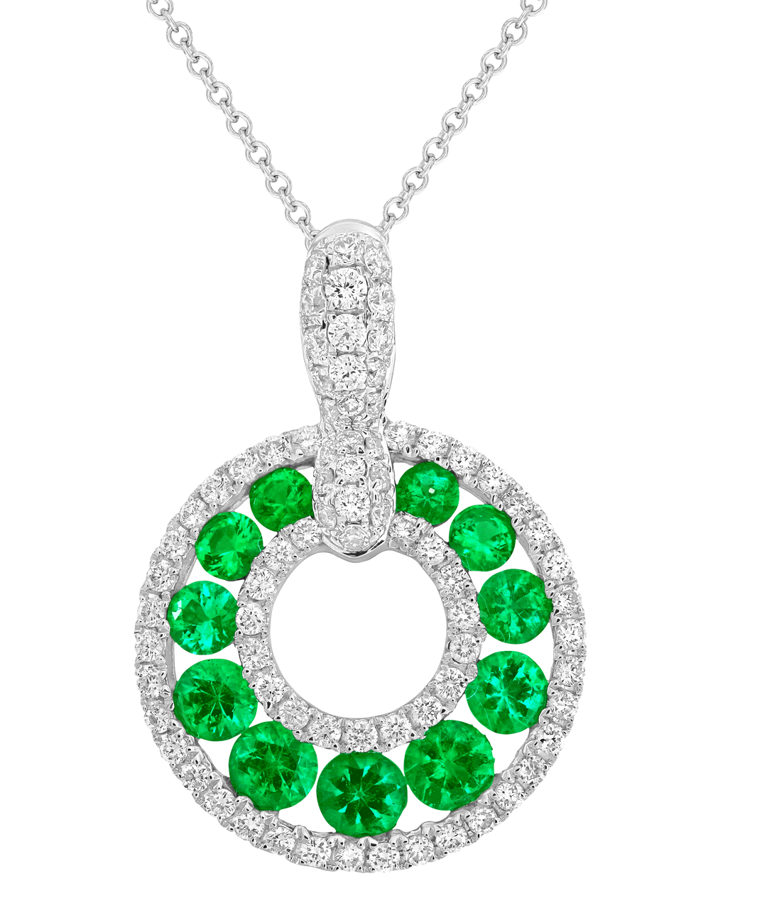 Natural emeralds and diamonds unite in a pendant collection, showcasing rich green gemstones, precise craftsmanship, and enduring designs crafted to commemorate love, milestones, and elevate everyday elegance with lasting sophistication.